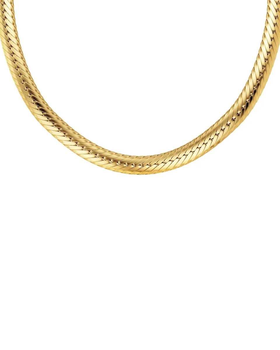 Hera Chain Necklace Gold fra Edblad. Hera er en moderne nytolkning av det klassiske herringbone-kjedet med et spennende mønster. Dette halskjedet i blankt 14K gullbelegg på rustfritt stål har et tidløst og luksuriøst uttrykk, med en polert, høyglanset overflate som løfter ethvert antrekk – perfekt til både hverdags og fest.
