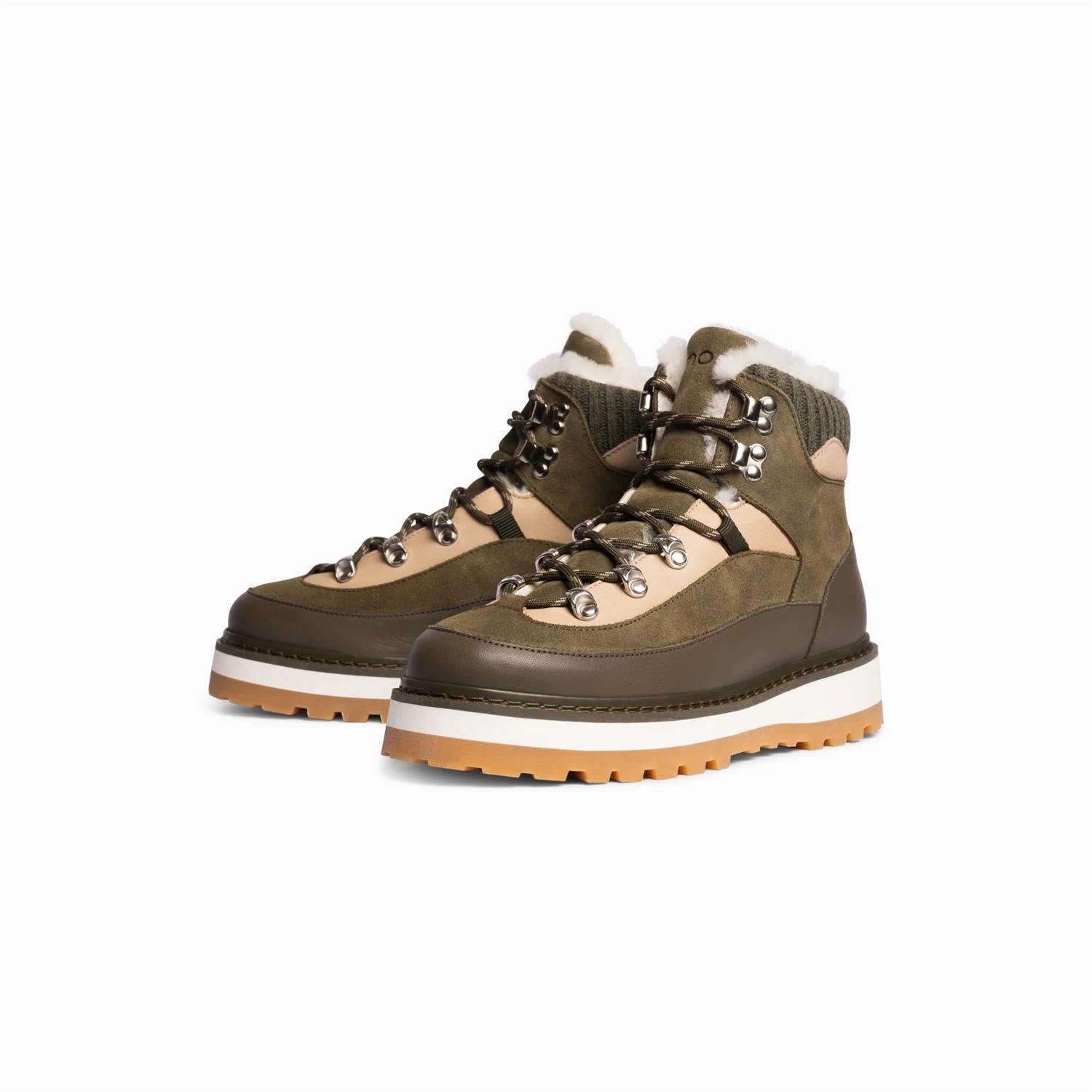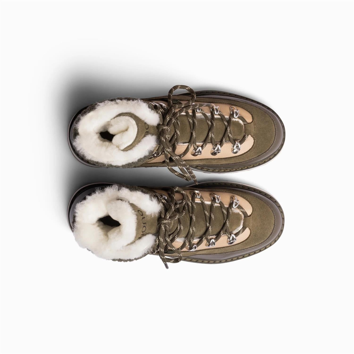 Tag Cap - Cactus Forest - Woman fra Mono. Tag Cap er en moderne tolkning av den klassiske fjellstøvelen, designet i Oslo og håndlaget i Portugal av sertifisert italiensk skinn. Modellen kombinerer funksjon og stil med et mykt lamfellfôr som gir suveren varme og komfort. Den solide sålen i gummi og mikromateriale gir godt grep og slitestyrke, enten du skal på shoppingtur i byen eller på tur i naturen. To sett lisser og en tidløs silhuett gjør Tag Cap til et allsidig valg for både moteentusiaster og eventyrere.