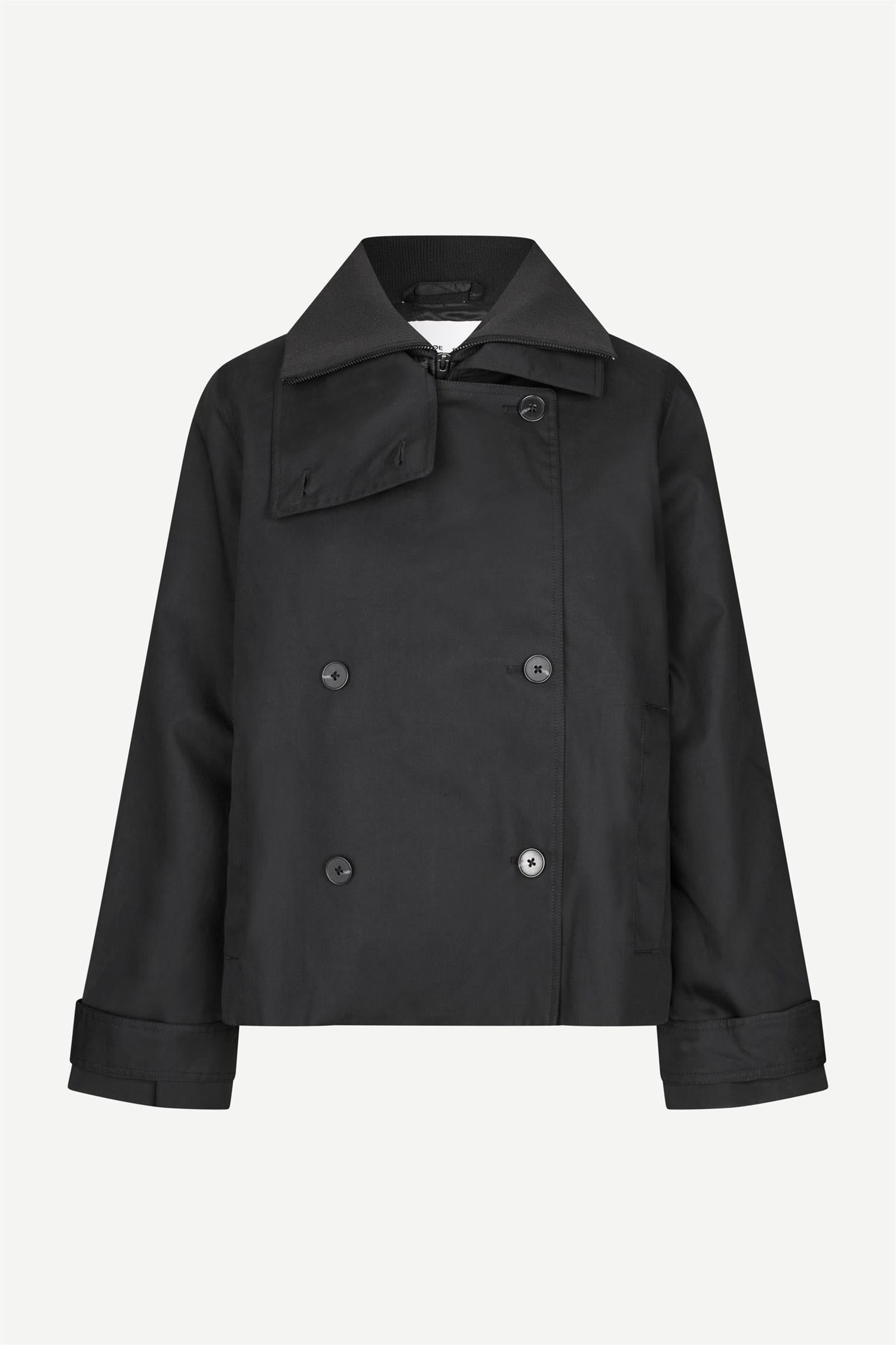 Samsøe & SamsøeSarivo Jacket 15470 fra Samsøe & Samsøe. Sarivo Jacket 15470 er en 2-i-1-jakke som kombinerer en kort trenchcoat og en vattert innerjakke, og gir deg et allsidig plagg med regular fit og avslappede, droppede skuldre. Ytterjakken har dobbeltspent knepping og justerbare mansjetter med stropp og knapp, mens innerjakken har glidelåslukking og er vattert for ekstra varme. Begge jakkene har høy hals og praktiske welt-lommer i front. Normal i størrelsen.