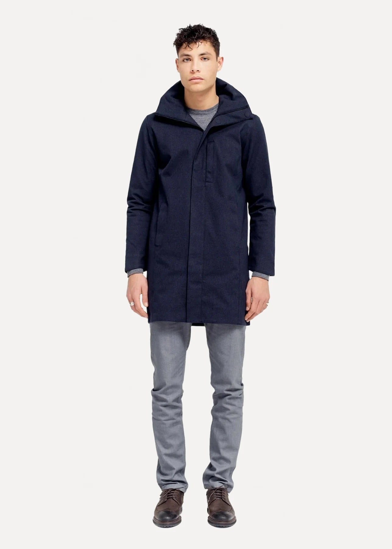 BRGNSludd Coat fra BRGN. Sludd Coat er en vanntett regnjakke for menn med et klassisk og rett snitt. Den har glidelås i front, høy krage og skjult hette i kragen som beskytter godt mot både regn og vind. Refleksdetaljer, magnetiske knapper og tapede sømmer gir både komfort og sikkerhet i all slags vær. Sludd Coat har en vannsøyle på over 20.000 mm og høy pusteevne, noe som gjør den godt egnet til bruk over lengre tid i kraftig regn. Med lett vattering kan jakken brukes i temperaturer ned til 0 ℃. Normal i størrelsen.