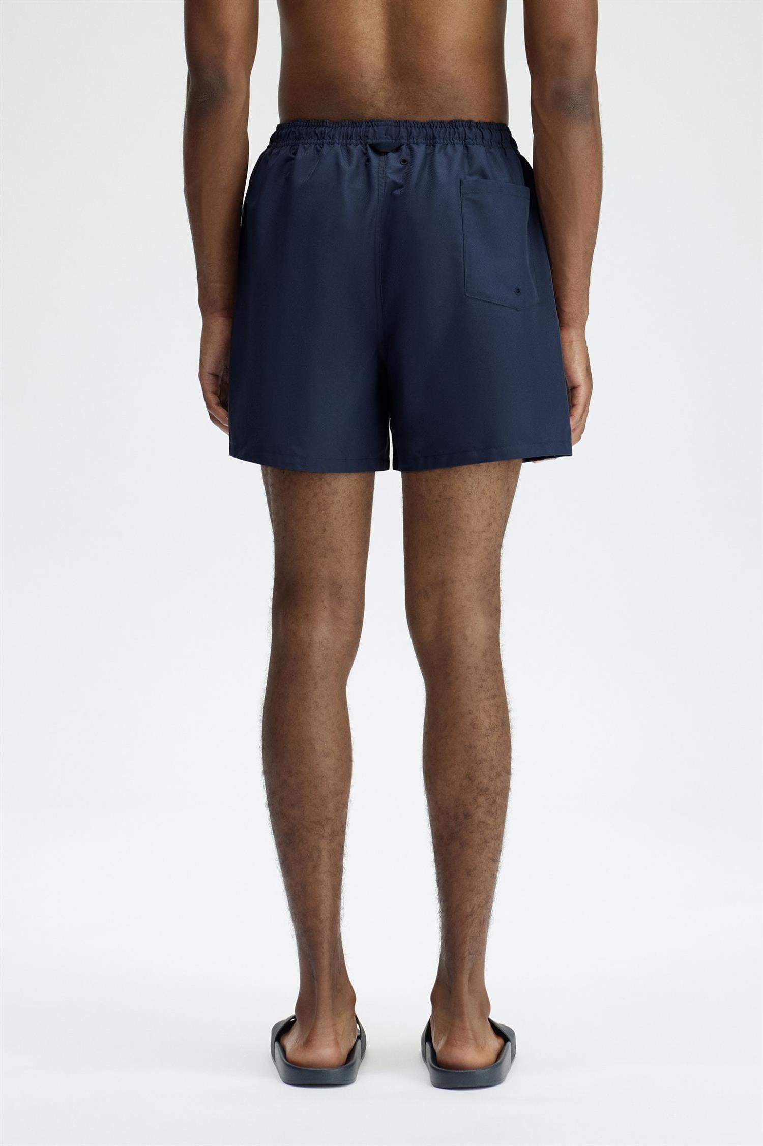 Swimshorts fra Fred Perry. Swimshorts er en lett og funksjonell badeshorts i resirkulert polyester med et rent, sporty uttrykk. Designet har elastisk linning med snøring, praktiske sidelommer og brodert Laurel Wreath på venstre ben som signaturdetalj. Regular fit og normal i størrelsen.