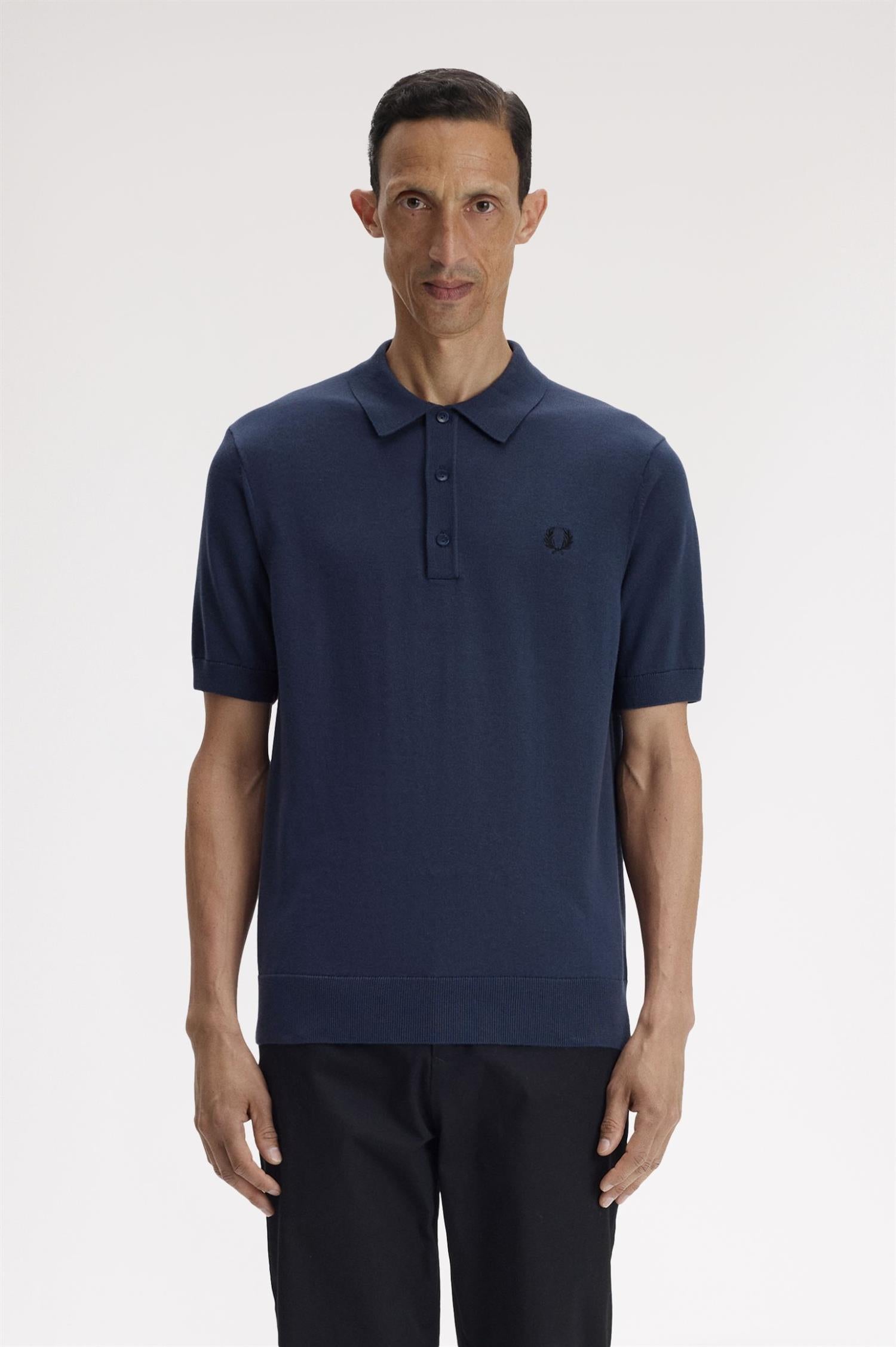 Fred PerrySupima Cotton Knitted T-Shirt fra Fred Perry. Supima Cotton Knitted T-Shirt er en kortermet, strikket skjorte laget i eksklusiv Supima-bomull som gir en ekstra myk følelse, høy slitestyrke og en raffinert finish. Modellen kombinerer et klassisk skjorteuttrykk med komforten fra strikk, og har en regular fit som gjør den like anvendelig til hverdagsbruk som til mer gjennomførte antrekk. Skjorten er designet med treknappslukking med mock horn-knapper, ribbestrikkede avslutninger nederst og på ermene, samt den ikoniske broderte Laurel Wreath-logoen på brystet. Normal i størrelsen.