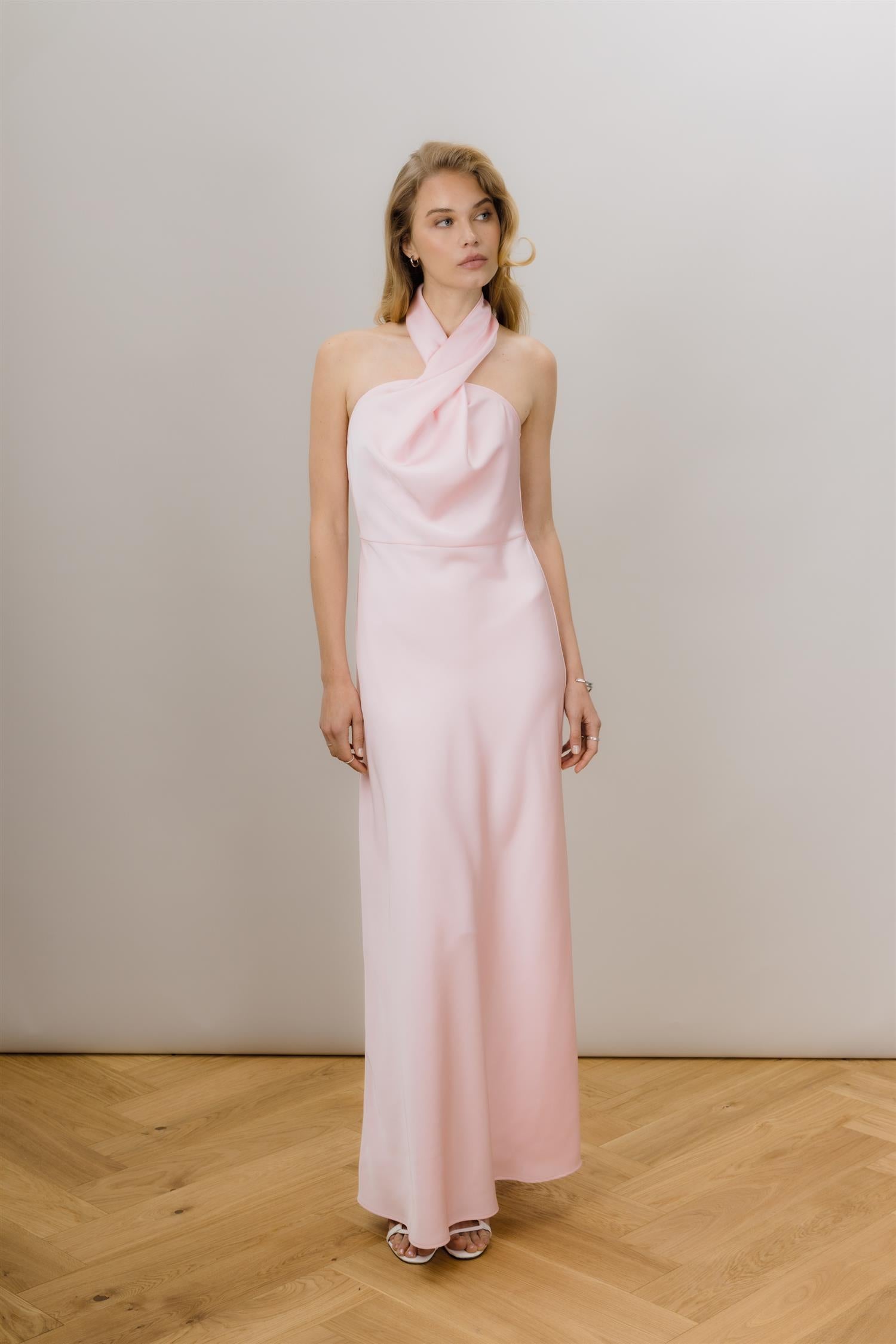 Dolores Dress fra Urban Pioneers. Dolores Dress er en nydelig maxikjole med halterneck-design og en elegant, flytende silhuett med vakre draperte detaljer. Perfekt valg til festlige anledninger, bryllup eller andre spesielle begivenheter. Lukkes i nakken for en ren og stilfull finish. Normal i størrelsen.