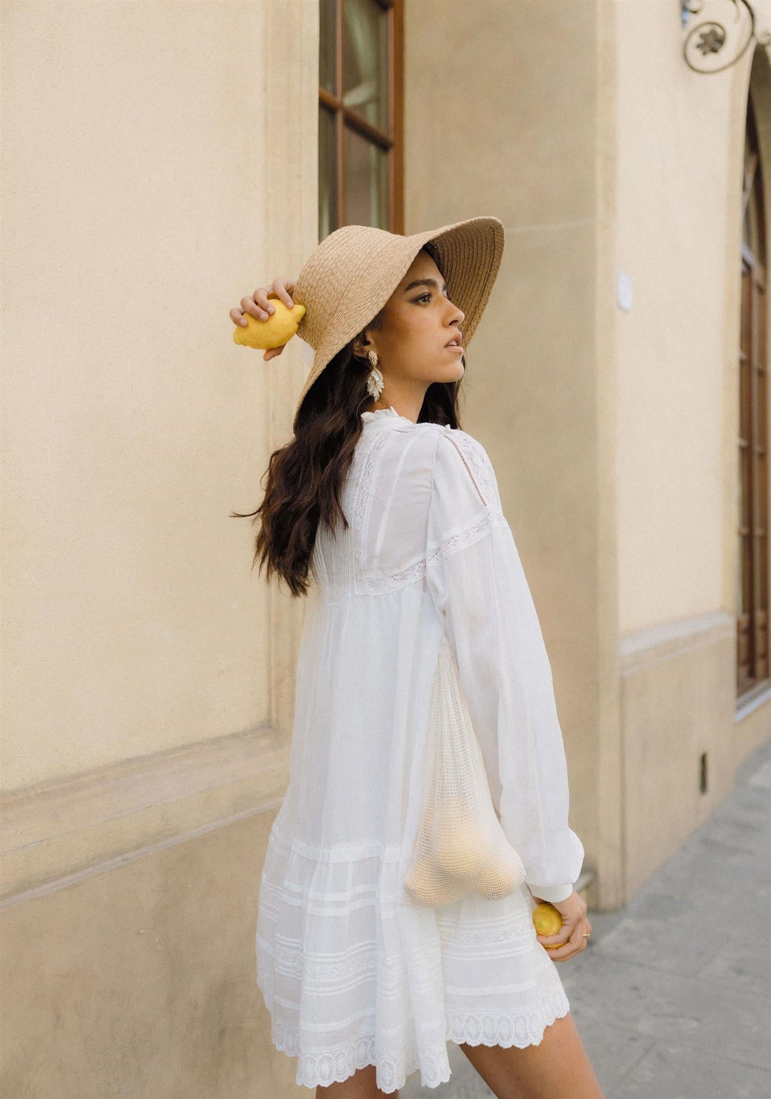 Selestina Dress fra Urban Pioneers. Selestina Dress er en lett og feminin kjole med et delikat og sommerlig uttrykk. Designet har en løs og luftig silhuett med lange ermer og fine volangdetaljer som gir kjolen et mykt fall. En elegant kjole som passer perfekt både til sommerdager og mer pyntede anledninger. Normal i størrelsen.