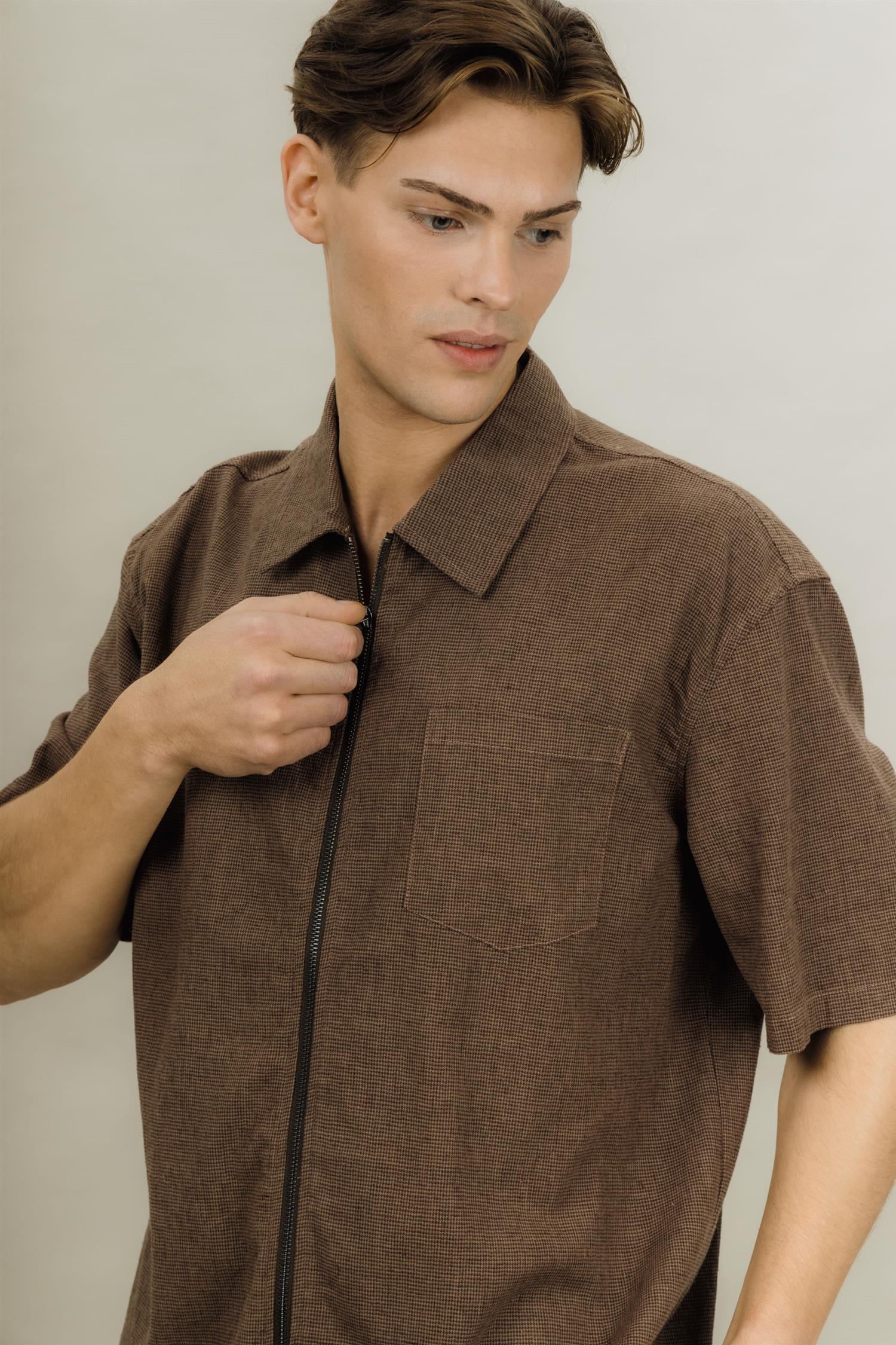 Gregorio SS Shirt fra Urban Pioneers. Gregorio SS Shirt er en stilren skjorte i en varm brun nyanse med et avslappet og moderne uttrykk. Designet har korte ermer, klassisk krage og glidelåslukking i front, som gir et rent og oppdatert preg. Den lette kvaliteten gjør den perfekt for varme dager og en uanstrengt stil.