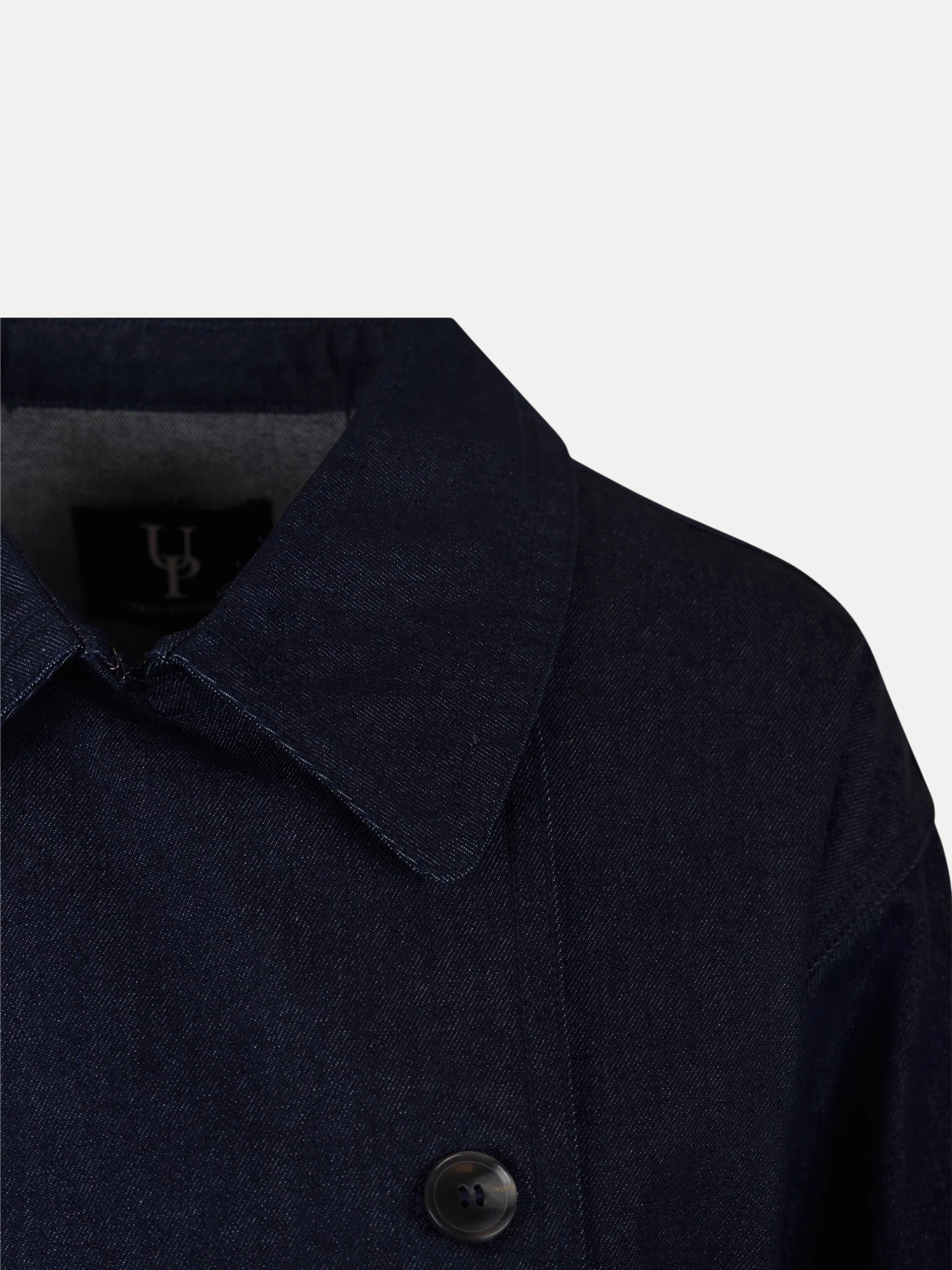 Cicely Trenchcoat fra Urban Pioneers. Cicely Trenchcoat er en klassisk trench i mørk marineblå denim med et tidløst og anvendelig uttrykk. Designet har en lengre silhuett med rene linjer og gjennomførte detaljer som gir et stilrent preg, perfekt til både hverdagsbruk og mer oppkledde anledninger.