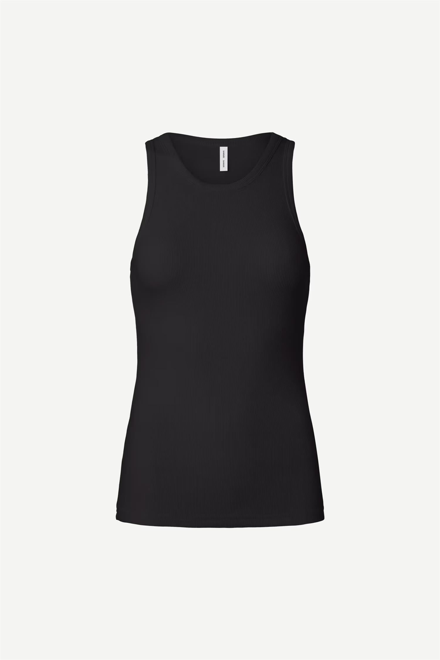 Alexo Tank 7542 fra Samsøe & Samsøe. Alexo Tank 7542 er en ribbestrikket slim-fit topp som passer perfekt under skjorter, jakker eller oversized gensere. Den sitter tett og gir en komfortabel og flatterende passform, ideell som basisplagg i garderoben. Normal i størrelsen.