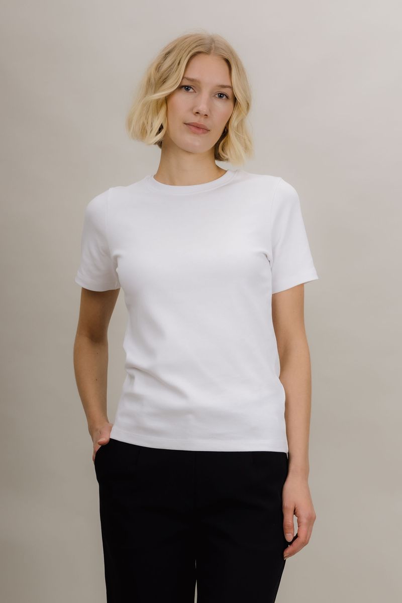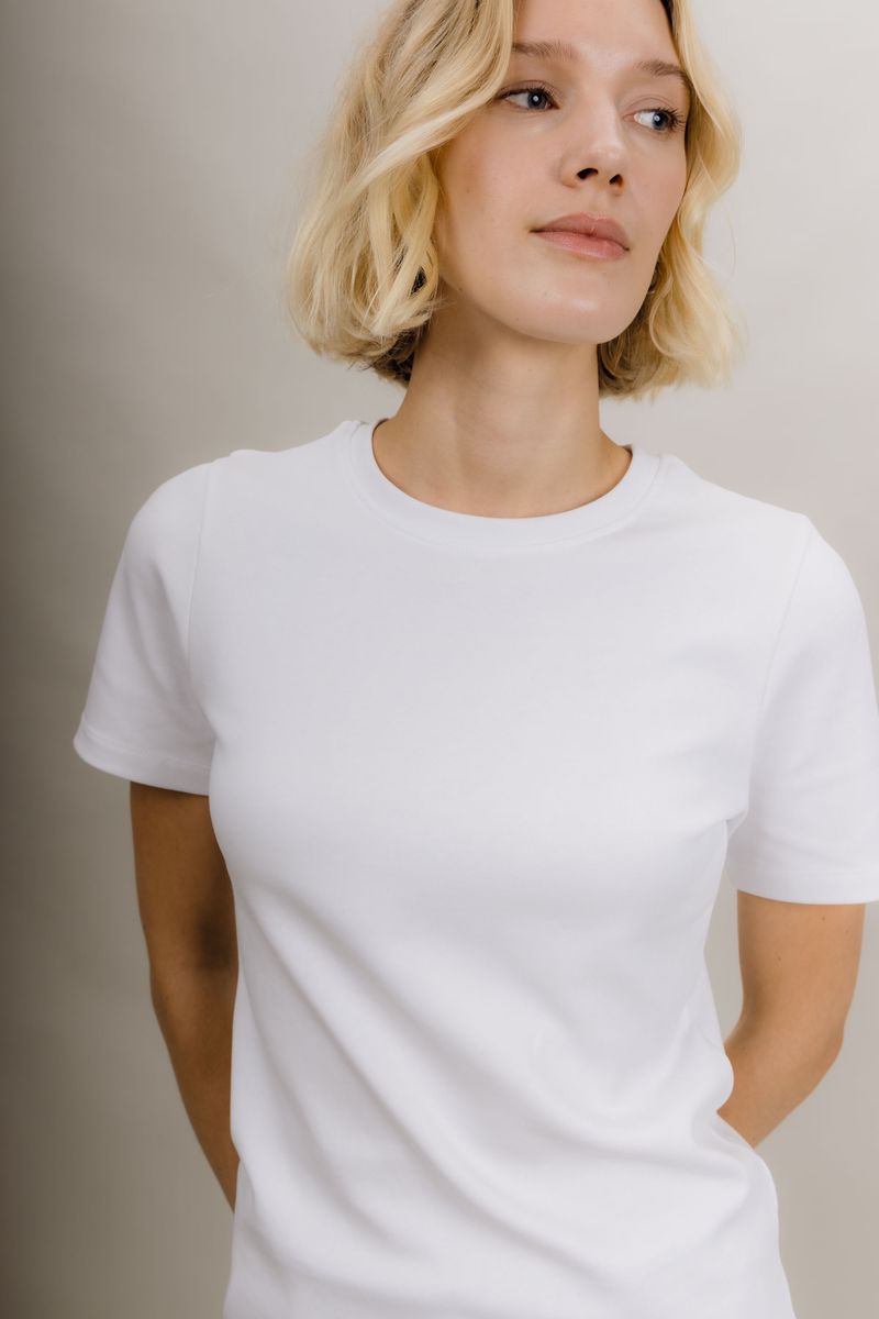 Linn Tee fra Urban Pioneers. Linn Tee er en tidløs basic t-skjorte med klassisk rund hals som gjør den enkel å style – enten alene, eller som base under en skjorte eller blazer. En komfortabel basefavoritt du alltid kan stole på. T-skjorten er normal i størrelsen og laget i myk, organisk bomull.