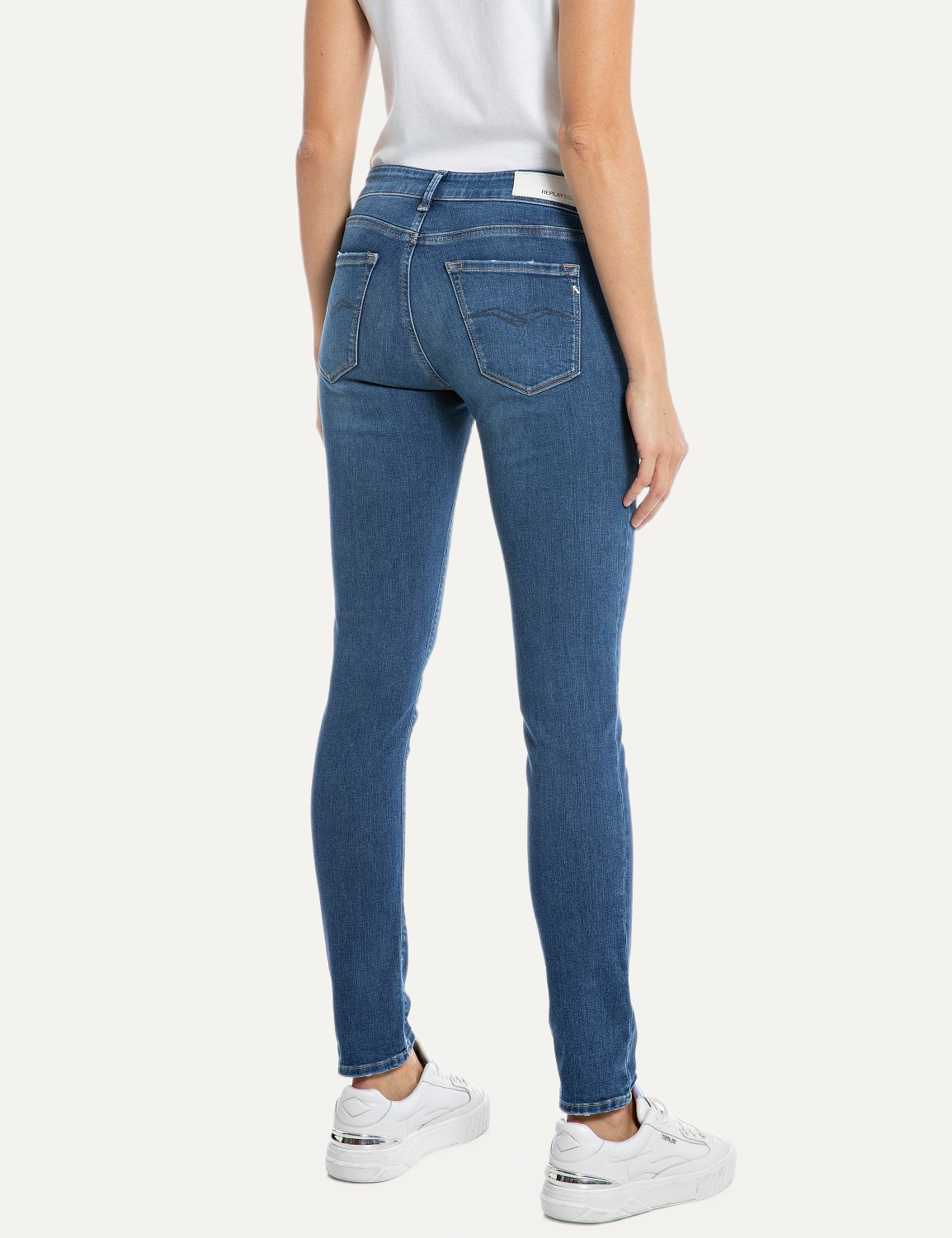 New Luz Skinny-Fit Jeans fra Replay. Disse stilrene skinny jeansene har en normal midje og en tettsittende passform fra hofte til ankel. Laget av stretchdenim i en dyp blå vask, sikrer de både komfort og bevegelsesfrihet. Klassisk femlommers design med glidelås- og knappelukking – et perfekt tilskudd til garderoben din. Normal i størrelsen.