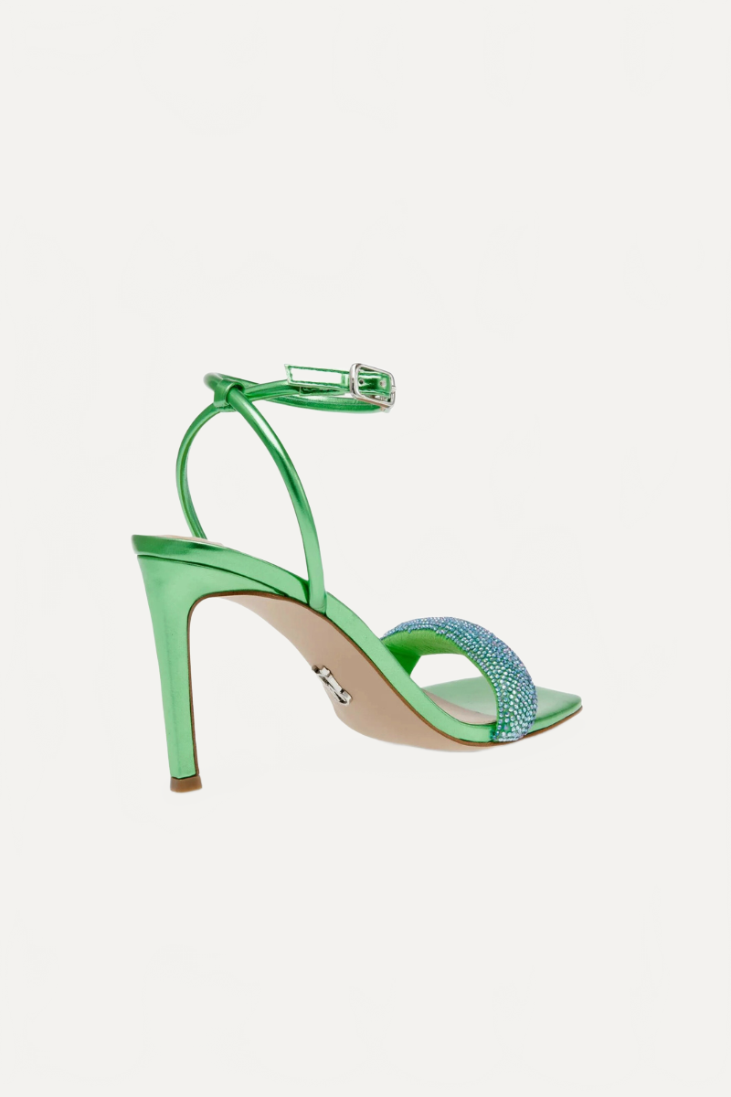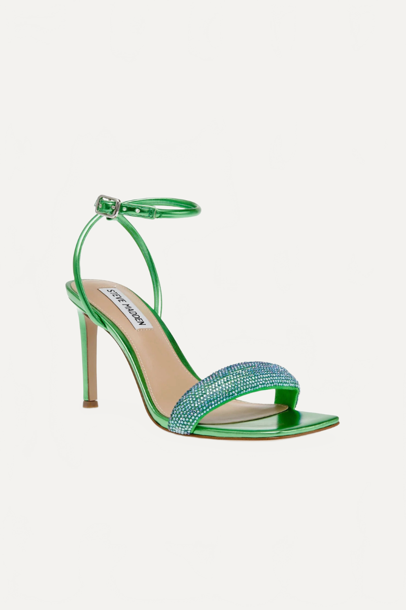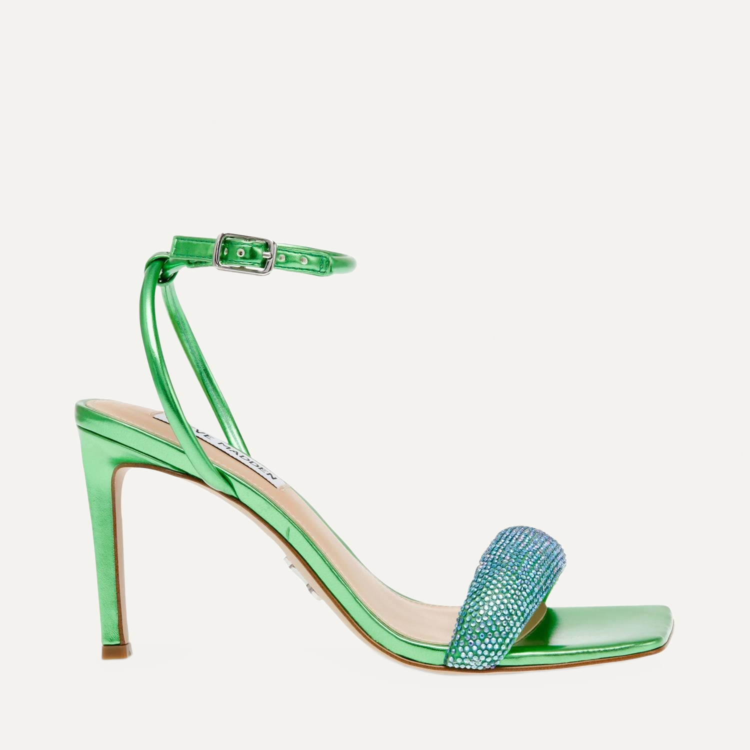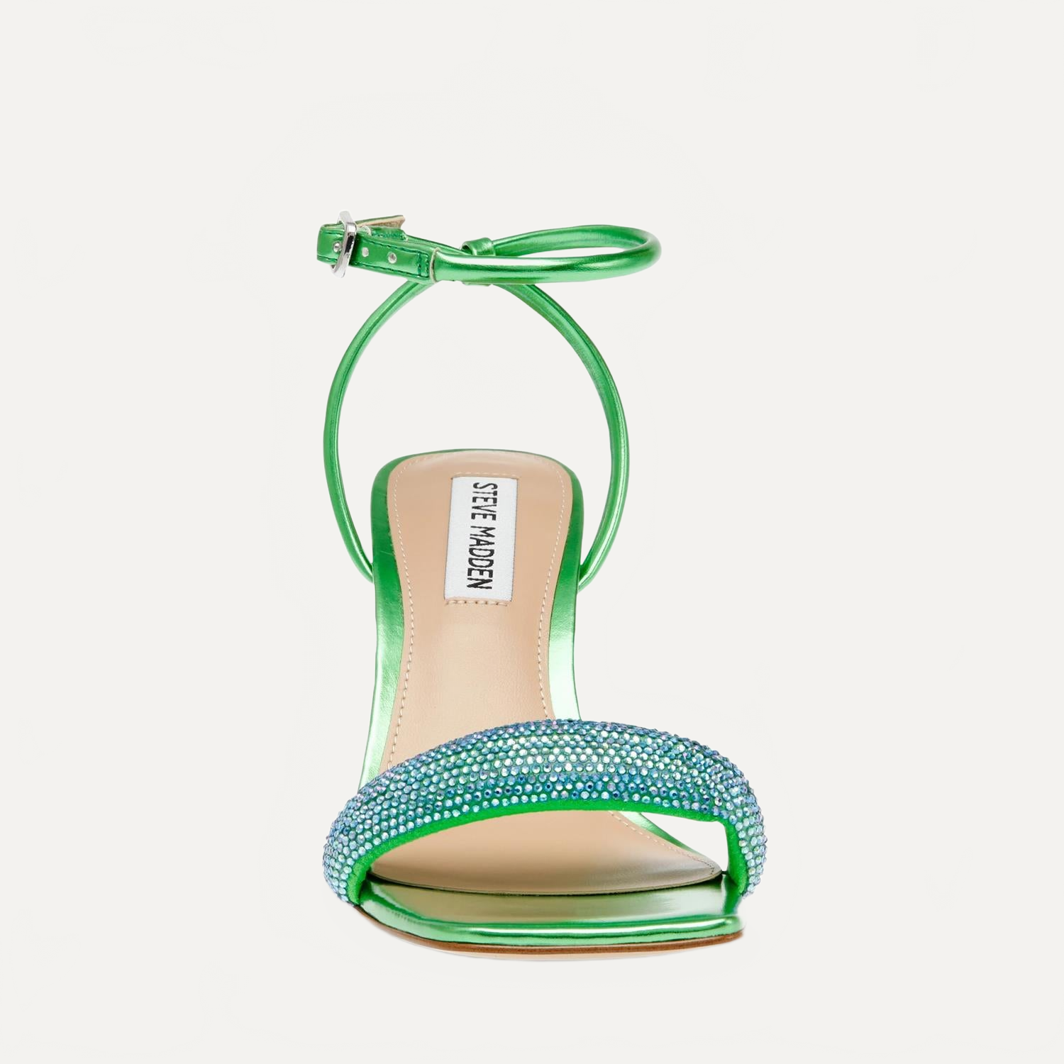 Entice-R Sandal fra Steve Madden. Superfine hæler i en trendy grønnfarge med blå glitrende reim. Den polstrede overdelen gir større komfort og glansen gir deg glamouren du trenger. Normal i størrelsen.
